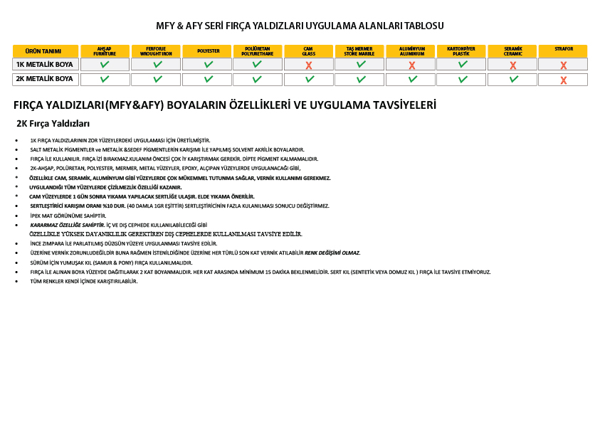 - NOT : 125ml MFY&AFY / ~0,50 m2 düz alan boyar.